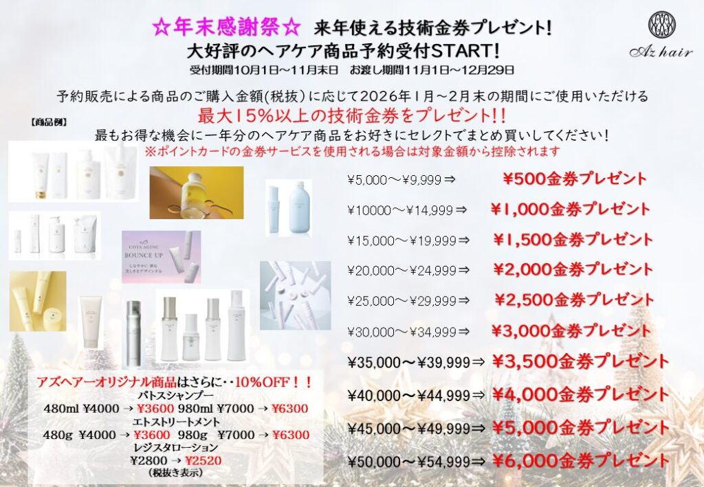 🎄年末恒例!美容室の【 ヘアケア商品 予約販売キャンペーン】スタート|A’zhair & Yeux de LAPAIX