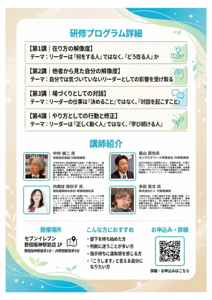 ※各回とも、対話と実践を重ねる設計のため全4回通しての参加を前提としています。